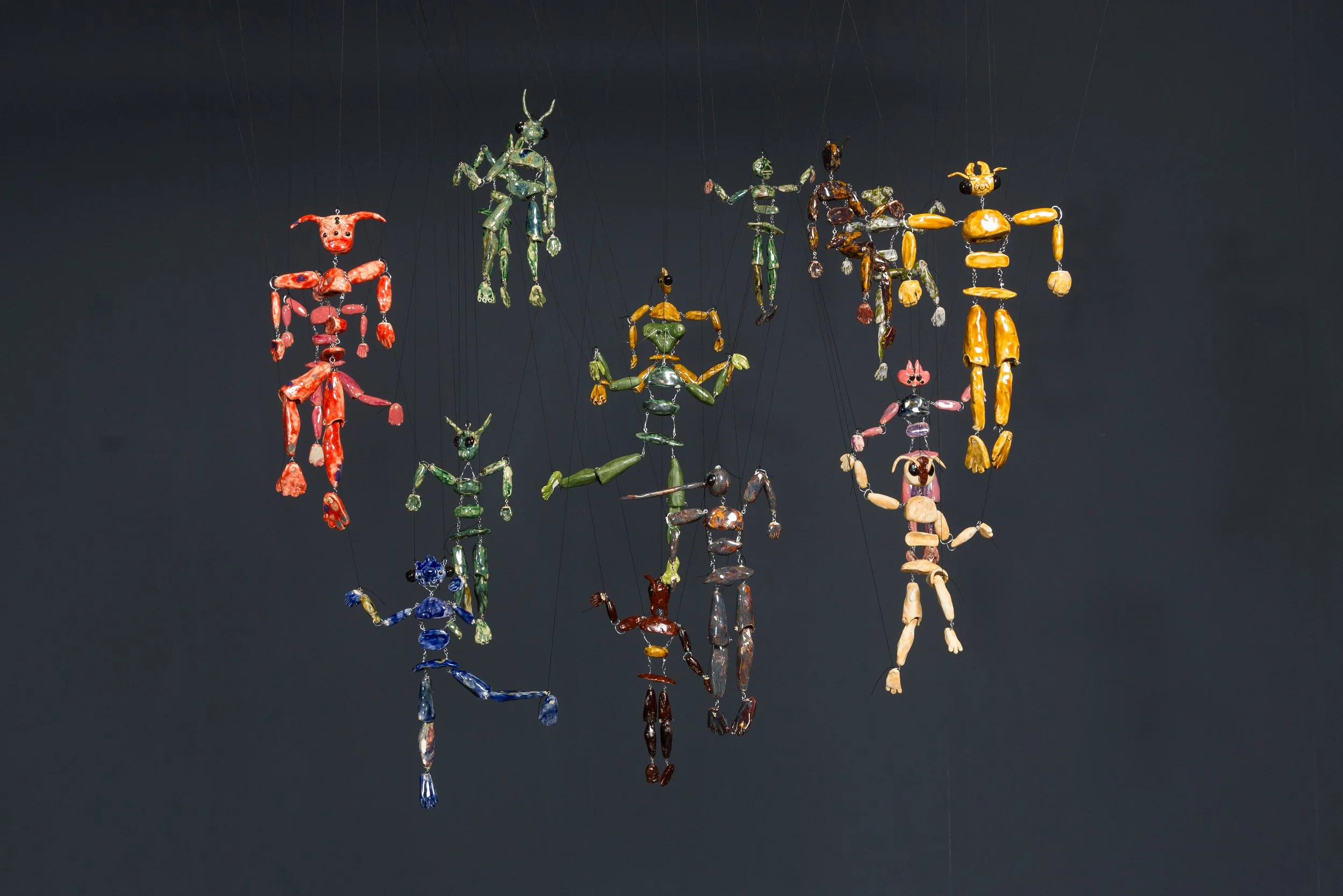 In(ter)sect starts from this paradox: the beings that sustain our world are the same ones we overlook or reject. The project is an installation of ceramic puppets; hybrid figures suspended in a web of threads, part human and part insect. Their magnified, expressive faces invite us to look closely at what we normally ignore, questioning why some forms of life are protected while others are treated as disposable.